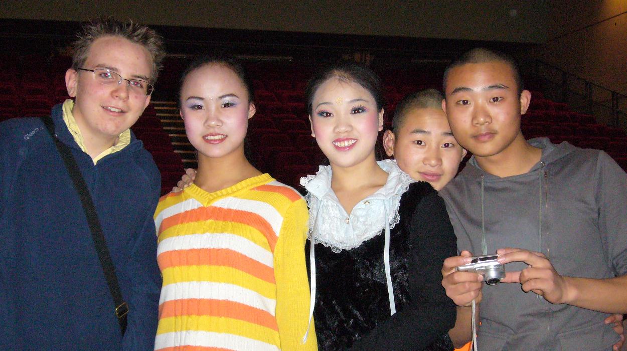 Un après midi de belle journée, nous avons quitté les studios de la radio Maxime et moi, pour nous rendre a Lorient plus précisément au Palais des congrès. Une fois arrive sur les lieux, nous avons pris la direction de la salle de spectacle sous l’accord du personnel. Et c’est à ce moment que nous avons vu un premier chinois revêtu d’un habit jaune, l’habit du moine. Nous ne l’avons pas dérangé dans ces pirouettes, nous attendions sagement la venue du chef de cette troupe.