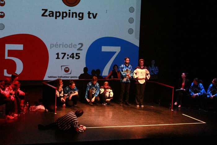 Nous n’avions jamais vu de théâtre d’impro. On a beaucoup apprécié aimé le l’ambiance. Le vote à main levée nous permettait de donner notre avis. Les chaussettes lancées dans la patinoire dès que le public n’était pas d’accord avec ce qu’il disait était très drôle. Le plus impressionnant c’est la vitesse à laquelle les joueurs trouvent leurs idées le temps d’un caucus (20sec), ça donnait envie d’en voir toujours plus.