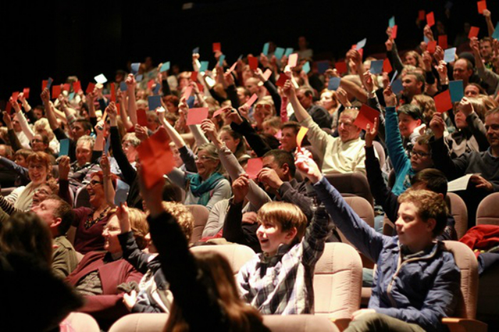La première fois c’est cool mais il faut que les personnes habituées de jouer dans son équipe la soutiennent. Être devant un public: non, car on ne voit pas vraiment le public sauf au moment des votes. Cela peut être compliqué selon le format, les adversaires et si le public n'est pas réceptif.