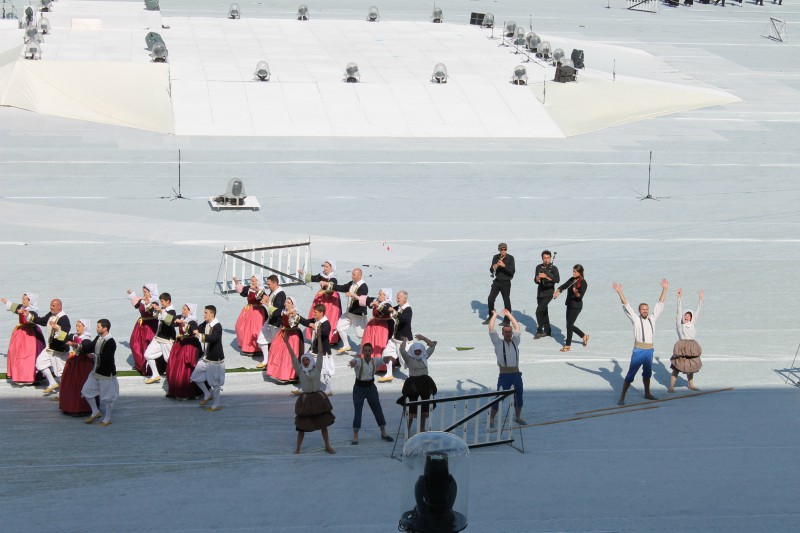 Dans la plupart des groupes, les personnes portaient les tenues traditionnelles de leur pays ; certaines d’entre elles se sont arrêtées devant la tribune présidentielle afin d’effectuer une danse. Une ambiance particulière venait du public, venu tout particulièrement des quatre coins du monde pour voir ce spectacle unique, réunissant autant de personnes de cultures différentes. Les musiques et danses étaient très originales, tout en restant traditionnelles, ce qui nous a beaucoup plu.