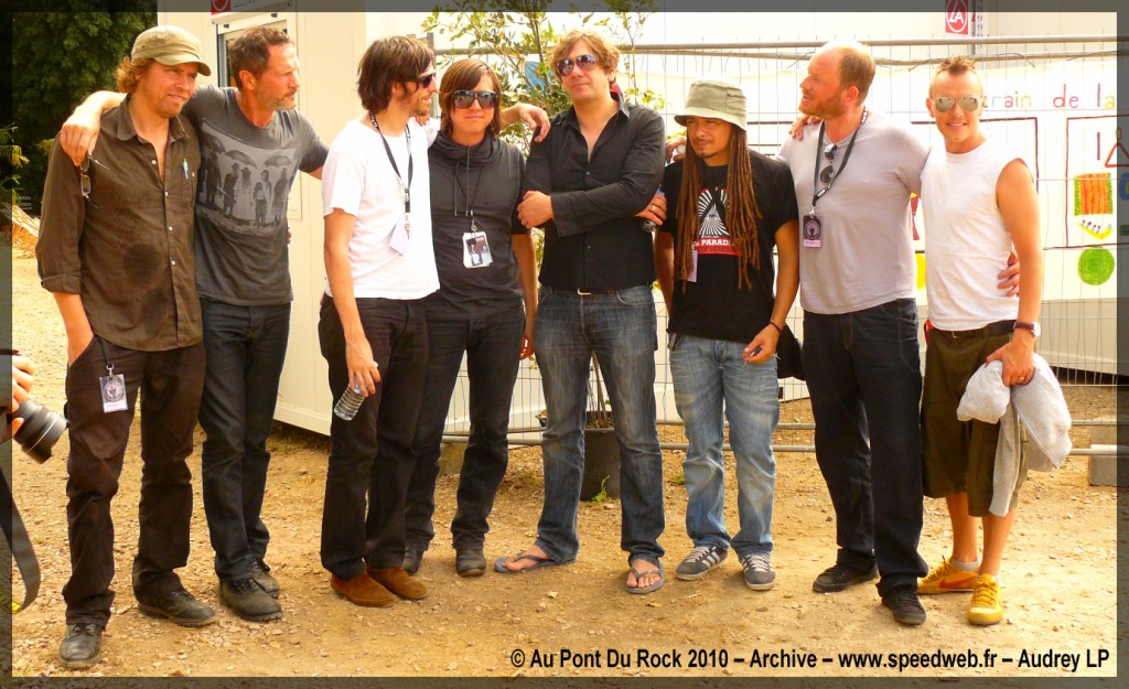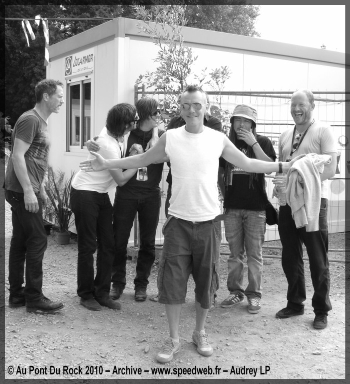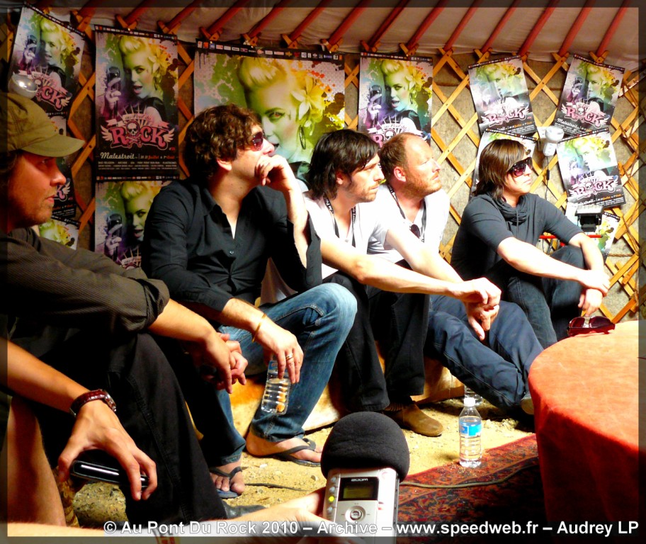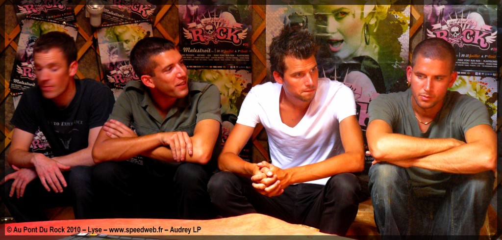 Lyse, première conférence de presse de leur vie !!!! Très émouvant. Hé oui, depuis l’arrivée de Dorian, le troisième frère, dans le groupe, Lyse avance et gravit les échelons. Leur été 2010 a été ponctué par des tremplins et des festivals, à la chaine. On les a retrouvé sur la scène de Rock’n Solex (dont ils ont remporté le tremplin), les Vieilles Charrues notamment et ce soir : Le pont du Rock ! Un bel honneur selon carcomme ils disent : « c’est le seul festival du coin où c’est vraiment du rock, avec un fil conducteur logique et ciblé ».