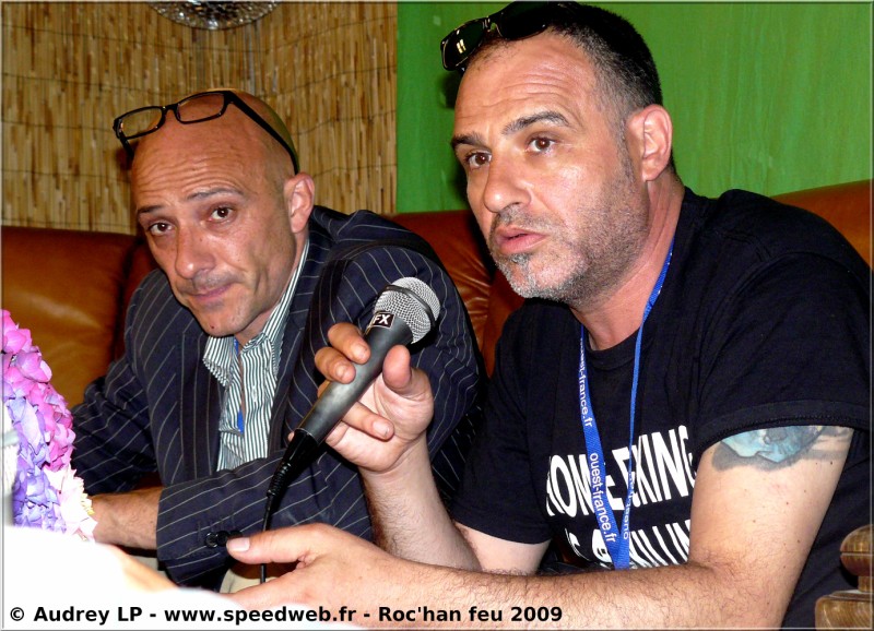Une rencontre fort sympathique avec un homme qui l'est tout autant. Il nous parlera de sa vie, de son oeuvre et du lien entre les deux ! Amis philosophes bonsoir. Nous, nous posons les questions et Oxmo y répond avec cette simplicité et cette manipulation des mots bien à lui. Notre première interview touche à sa fin et nous venons vous la faire partager : c'est ICI ! Après les bons moments, les moments moins drôles : il faut bosser ! Hé oui… Après quelques vagabondages entre le "parterre à coté d'une prise", le "débout pas trop loin d'une prise" un gentil monsieur nous dit "ben posez-‐vous là si vous voulez", et là c'est le pied ! Le Speed squatte fauteuils et canap' de Roc'Han Feu, l'ambiance est très détendue !