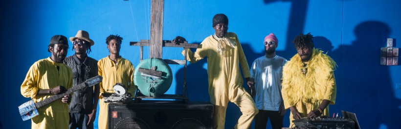 - Le groupe s'est formé en juillet 2016 à Kinshasa. (Debruit) Moi j'ai été invité par un réalisateur qui filme les artistes à Kinshasa et qui voulait que je vienne voir les musiciens. On s'est donc rencontré à ce moment-là, certains artistes se connaissaient, d'autres pas, par exemple Boms et Makara se sont rencontrés aussi au moment où le groupe s'est formé. Boms créait déjà des instruments avec des amis musiciens et des performeurs artistiques plus contemporains. Makara était plus déjà sur des musiques électroniques, avec plein de danseurs autour de lui, il a travaillé avec un chorégraphe et joue 6 soirs sur 7, 4 heures de suite! Le groupe s'appelle "KOKOKO!", ce qui signifie "toc toc toc" ou "knock knock". Il faut toquer pour l'ouvrir. Et si la porte ne s'ouvre pas, on vient frapper un peu plus fort et... ça s'ouvre!