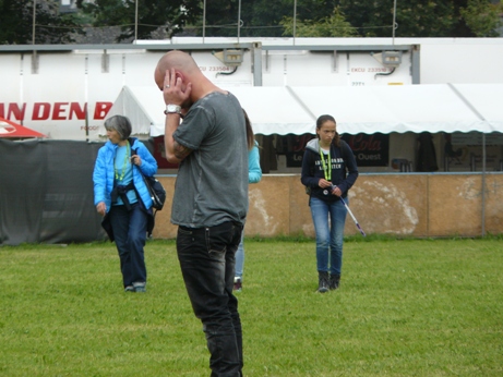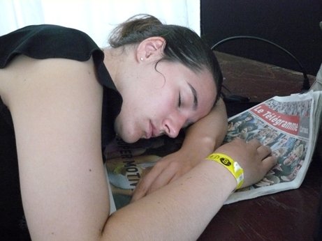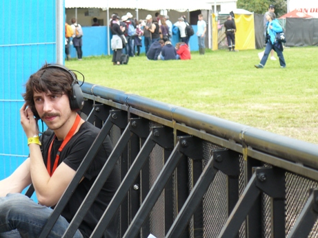 Ce jeudi démarre durement pour nous, 1kilomètre de marche, avec les sacs, tentes et la popote, on reçoit notre passe partout jaune (non pas une personne de petite taille déguisée en Simpson mais le fameux bracelet presse pour nous les pros !), quelques bonjours, on pose les tentes, pause cigarette (avec des s) et hop on repart, direction le coin presse où les discussions sont très portées sur la…………météo !