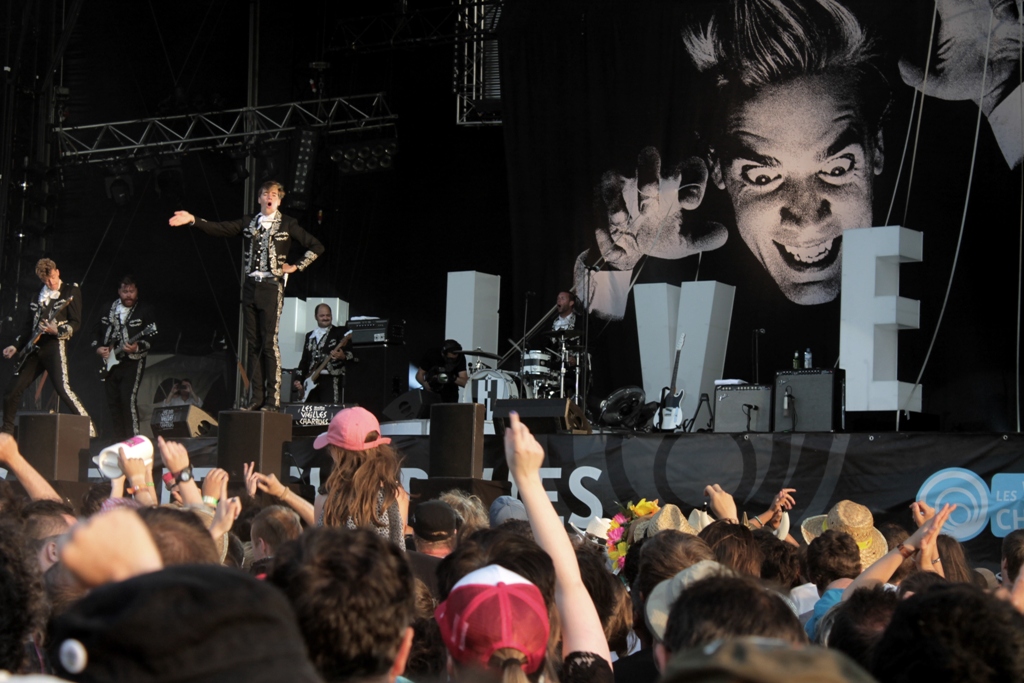 Autre détail un peu redondant et donc fatiguant, c'est cette façon de jouer et de s'adresser au public entre chaque chansons, les pauses entre chaque morceaux semblait un peu long par moment, déjà passé il y a 5 ans ici même, une certaine impression d'en faire un peu trop s'est fait ressentir. Enfin, ce groupe semble vraiment plus à l'aise dans la nuit, ce qui n'était pas le cas ce soir! Mais le groupe a fait le travail. Oups, dernière petite chose, Kasabian, l'année dernière a fait s'assoir le public, The Hives s'y est mis aussi, le rock deviendrait il un peu bon enfant!!!