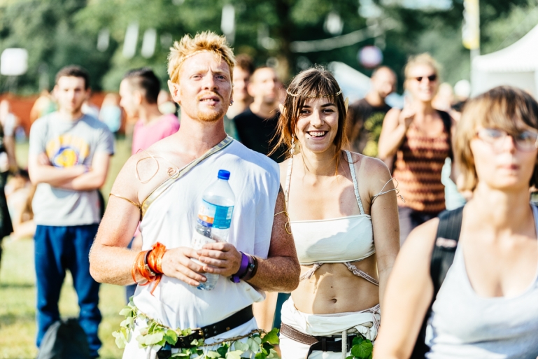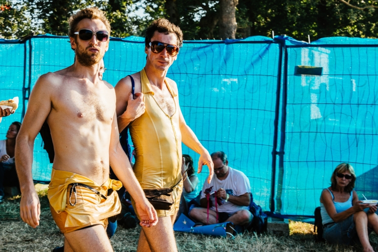 14h15 : arrivée au point presse, nous posons le matériel et nous dirigeons vers le camping bénévole, là où logent les journalistes, le staff nous prévient que les coins d’herbe dispos sont rares ! Audrey me charge ex cathedra d’aller chercher un emplacement pendant qu’elle profitera du soleil !