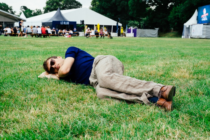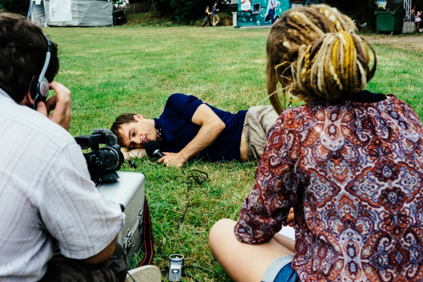 16h00 : à peine installer, première interview. Et en vidéo et en plein air ! L’heureux élu est « Frànçois and The Atlas Mountains », le groupe charentais, mais formé à Bristol, est tout disposé à s’allonger dans l’herbe pour répondre à nos questions. La pluie se charge de clore l’interview. Mention spéciale à Lena qui nous a dégoté cette interview en un temps record !