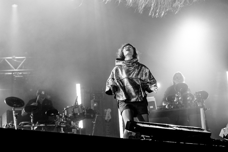 Visuellement c'est tout aussi impeccable : traversés par des lasers, les filaments translucides suspendus au dessus des artistes dessinnent des formes géométriques en 3 dimensions et des flashs crépitent lorsque les synthés envoient leurs accords incisifs. Fidèles au titre de leur dernier album, Shake Shook Shaken, les superbes Despair, Hangover and Ecstasy , Miracles ou encore Sparks ont secoué le public des Charrues, qui a su apprécier ce concert.