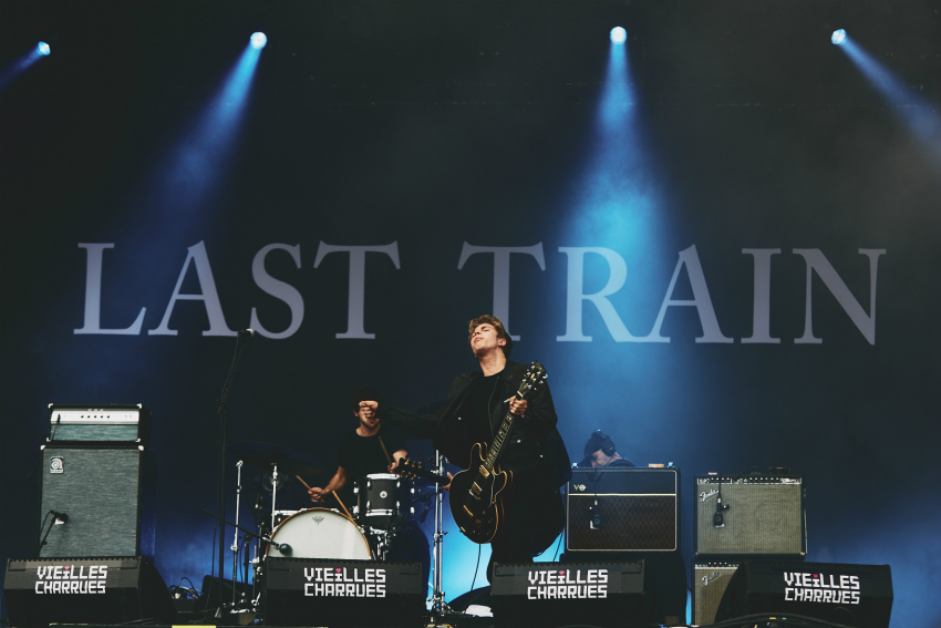 A la suite de leur concert enflammé, les Last Train étaient en conférence de presse dans un état qu’ils ont eux-mêmes qualifiés d’ « aqueux ». D’humeur blagueuse, encore surexcités de leur passage au plus grand festival de France. L’exploit n’est pas mince et ils en sont plutôt « fiers », sans albums, « sans page Wikipédia » ils ont d’ores et déjà réussi à faire plus de 300 concerts. Fondé à Mulhouse à 12 ou 13 ans, Last Train ce groupe indépendant qui a fondé son propre label court aujourd’hui le globe de l’Asie à l’île de la Réunion. La presse a la mauvaise habitude de les qualifier souvent comme des bébé rockeurs et cela leur déplait. Ils en ont marre même. Il ne trouve pas l’explication de ce qu’importe la différence d’âge dans la musique, ce qui compte pour eux c’est ce que les personnes ressentent à l’écoute de leurs chansons, qu’eux-mêmes se donnent à fond dans leur concert, qu’ils ont ça au plus profond d’eux. Au cours de cette conférence, on apprend même que les Last Train ont récemment écouté Céline Dion, « ce qui compte c’est que tu te donnes à fond ! » ! Ils expliquent par ailleurs que jouer en festivals et concerts, les deux sont des univers totalement différents. Pour les Vieilles Charrues, le chanteur explique qu’avec son groupe ils ont marché de façon à voir la scène où ils allaient se produire de loin. Les premiers mots qu’ils ont dit face à l’immense scène étaient : « Put*** c’est là qu’on va jouer ? »