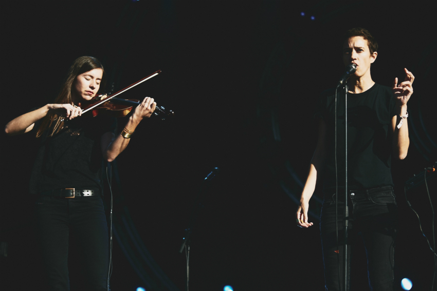 Mansfield TYA : détendu aux Vieilles Charrues ! Le groupe nantais apparaît de bonne humeur en conférence de presse quelques heures avant leur passage sur scène où se jouera leur musique « mélancolique ». Cette musique si particulière, si indentifiable au groupe, s’élabore dans un studio en bord de mer, ou davantage « une maison de vacance avec pleins d’instruments », sorte de « laboratoire » où elles peuvent « composer et cuisiner » leur musique, faite de dénuement. L’idée est de créer une « musique minimale, essentielle », en rupture avec « un format spécifique de la chanson française », « festive » avec des «accordéons » ; car l’engagement artistique est total. Les paroles sont soignées, précieuses et puissantes aussi et clips qui les imagent sont d’autres œuvres, qu’elles laissent à des plasticiens.