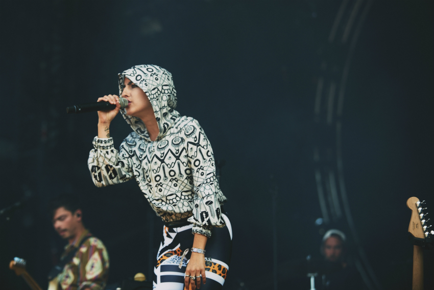 C’est sous un soleil de plomb que JAIN a donné son concert sur la scène Kerouac. Le public est venu tôt et en masse spécialement pour celle qui, il y a deux ans, était elle-même festivalière aux Vieilles Charrues, en camping. A 13h30, ouverture des portes. A 14 heures, Jain fait se retentir les premières notes de son nouvel album Zanaka, rempli de tubes tels que « Makeba » ou « Come ». Pendant le concert, c’est un petit bout de femme déchaîné qui nous entraîne dans sa danse, son univers et ses décors créés et dessinés par elle-même. On découvre de nouvelles chansons, dont une adressée à Paris. Comme une « déclaration d’amour à Paris et un appel à la Paix » nous explique-t-elle. Son album et ses chansons exclusives rendent fou le public. L’énergie qu’elle dégage sous un soleil ardent est une réelle partie de plaisir pour ce dernier jour. La journée pouvait difficilement mieux commencer et on ne peut que se rendre compte que la musique de Jain est associée au soleil, qu'elle prend une nouvelle envergure, africaine, dans la chaleur bretonne ! L'artiste en noir et blanc nous fait même chanter et enregistre ainsi les membres du public sur « Come ». Elle répète la séquence et l'utilise tel un instrument, pour accompagner ensuite son chant. Définition du cool non ? Comme une nouvelle attraction, les équipes des Vieilles Charrues nous arrose d'eau fraîche rajoute à l'humeur festive. Il devrait lancer le plan canicule plus souvent...
