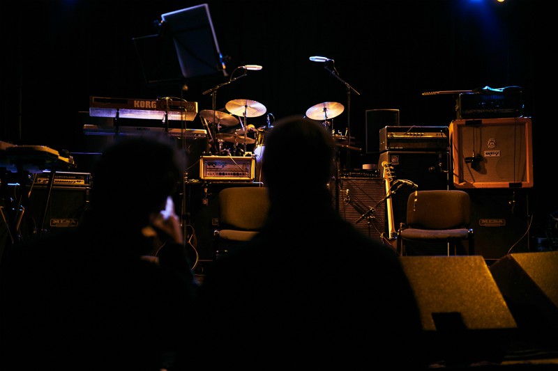 Tout d’abord, le batteur et le pianiste étaient légèrement surélevés à l’arrière de la scène, une ligne d’amplis superposés les séparait des autres musiciens. Cette disposition reflète un esprit à la fois désordonné et artistique semblable finalement à leur musique.