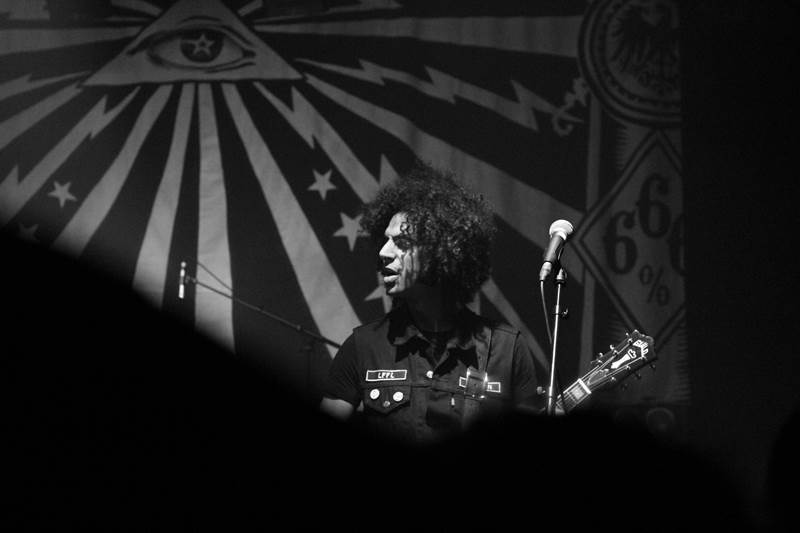 Dans la foule, des engueulades, des bières qui se renversent. Jake lâche une phrase d'une voix de crooner, "I'm not a nice guy". Son guitariste montre la croix qu'il porte a son cou, gueule, ils sont prêts à en découdre. Jake relance au micro "I'm not a pussy you know". Quand il ôte ses lunettes et laisse entrevoir ses yeux d'un bleu glacé, on s'attend au pire... La tension est palpable, on observe en silence en essayant de d'imaginer la suite avec une certaine curiosité morbide ou du moins de comprendre ce qui est en train de se passer. Tout cela commence prendre l’allure de ce célèbre festival dont le groupe se dit les seigneurs, qui fut perturbé dans tout son déroulement par des violences incessantes. Finalement, la situation se calme, le concert repart, dans une frénésie rock renouvelée.