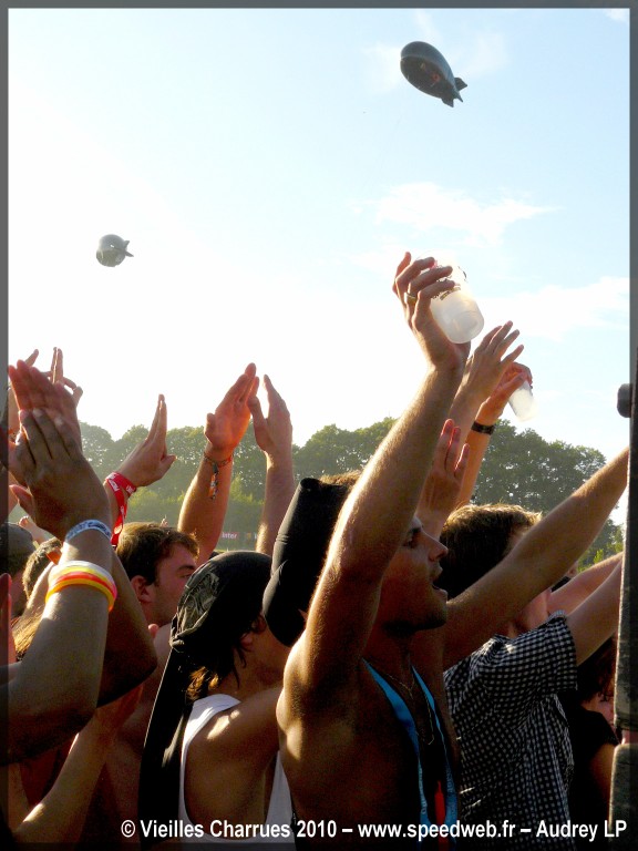 C'est horrible, parce que tout le monde nous avait dit que les Vieilles Charrues c'était énorme, mais ca nous paraît petit... Mais c'est sûr que ça nous motive. Je pense que le Stade de France, c'est un peu le concert mémorable de notre vie... Tous les gens qui y ont assisté, et nous même, avons eu un peu de mal à s'en remettre... On a vécu ça assez incroyablement, mais chaque concert est important et doit bouleverser notre vie, alors on attend ce soir avec impatience... Le public qui nous suit nous a donné la possibilité de faire le Stade de France. On a quand même pu installer la plus grande scène jamais installée là bas, avec un prix des places modéré. Le public n'est pas une vache à lait, et on est sur cet état d'esprit.